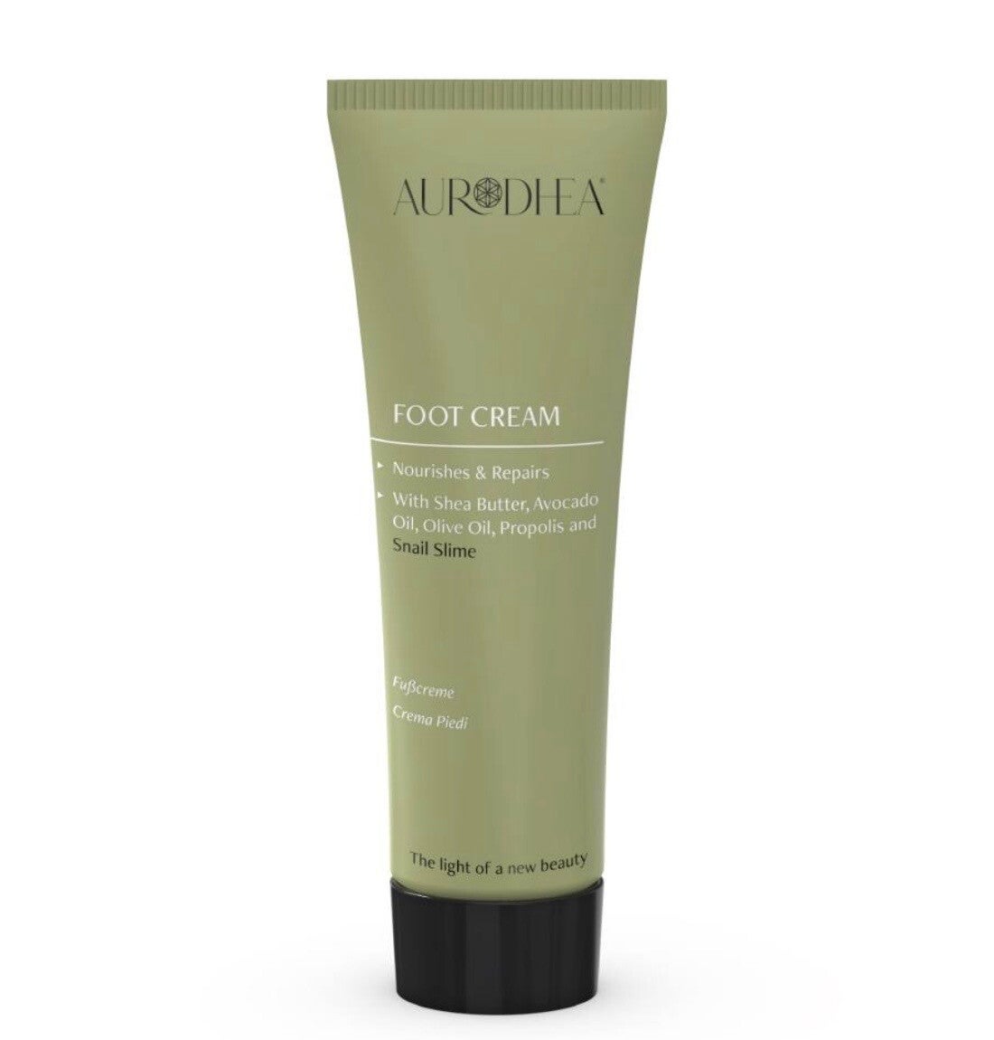Die Aurodhea Fußcreme mit Schneckenschleim erfrischt, beruhigt und macht beanspruchte Füße wieder geschmeidig. Bei regelmäßiger Anwendung hilft sie dank der wertvollen Wirkstoffe von Schneckenschleim und Propolis, die Fußhaut weich zu machen und lästige Unreinheiten, die durch zu enge Schuhen und ständiges Reiben entstehen (wie Hornhaut und Schwielen), zu bekämpfen. Sie repariert die Fußhaut zuverlässig, indem sie die Heilung fördert und rissige Füße beruhigt. Angereichert mit Sheabutter, Mandelöl, Avocadoöl und Olivenöl pflegt die Creme die Füße besonders intensiv und macht sie geschmeidig und glatt.